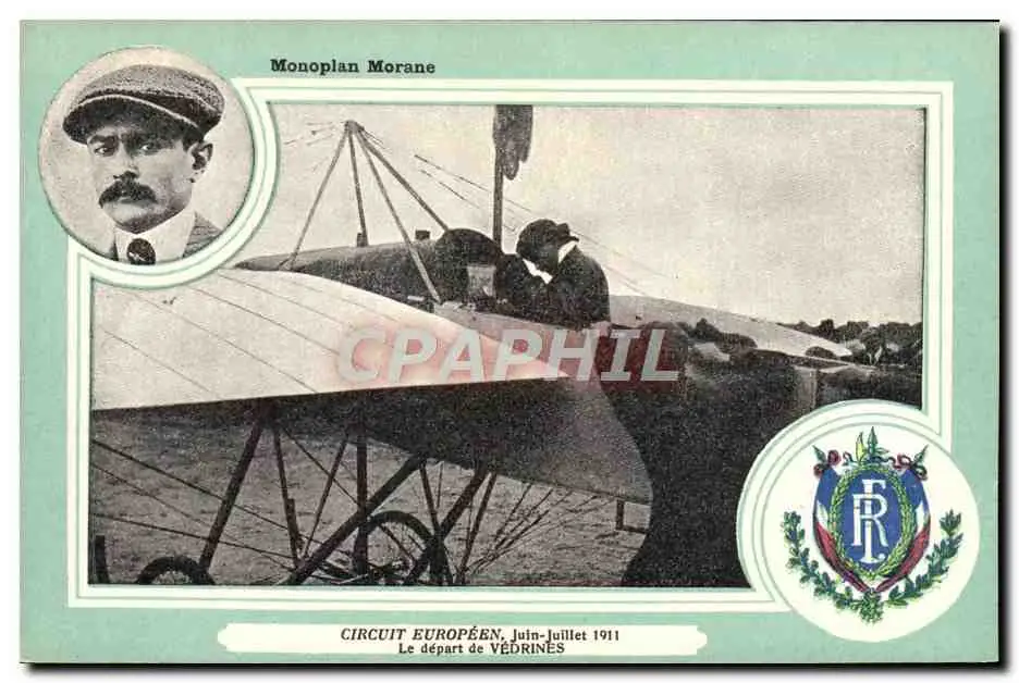 Cartes postales Avion Aviation Monoplan Morane Circuit Europeen Juin Juillet 1911 Le depart de Vedrines