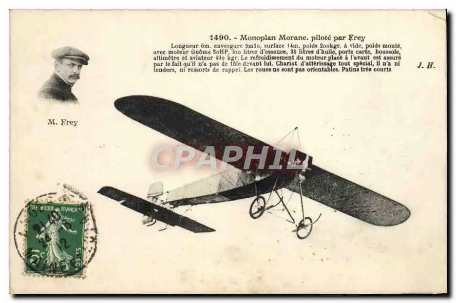 Cartes postales Avion Aviation Monoplan Morane pilote par Frey