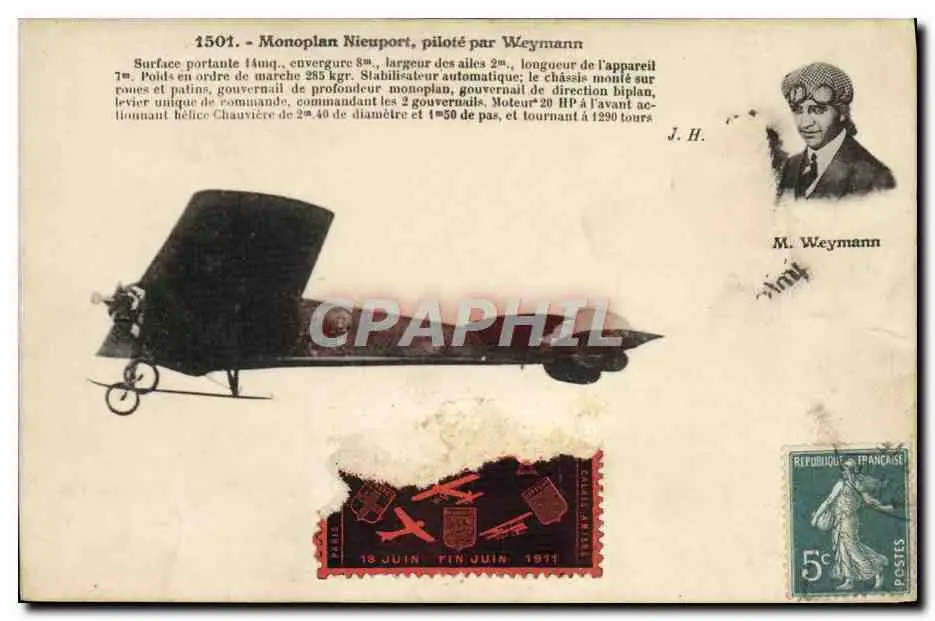 Cartes postales Avion Aviation Monoplan Nieuport pilote par Weymann