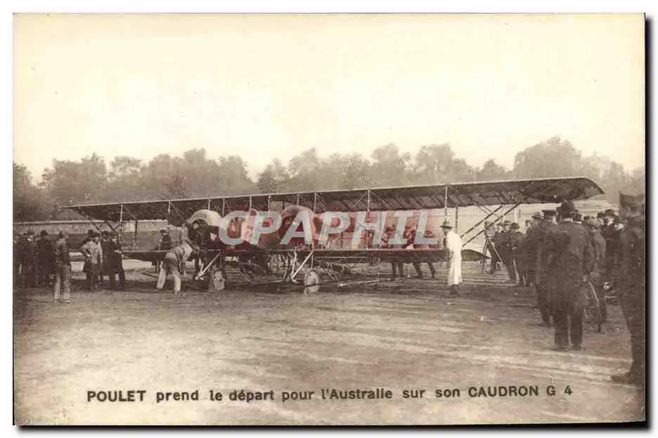Cartes postales Avion Aviation Poulet prend le depart pour l'Australie sur son Caudron G4 Australie