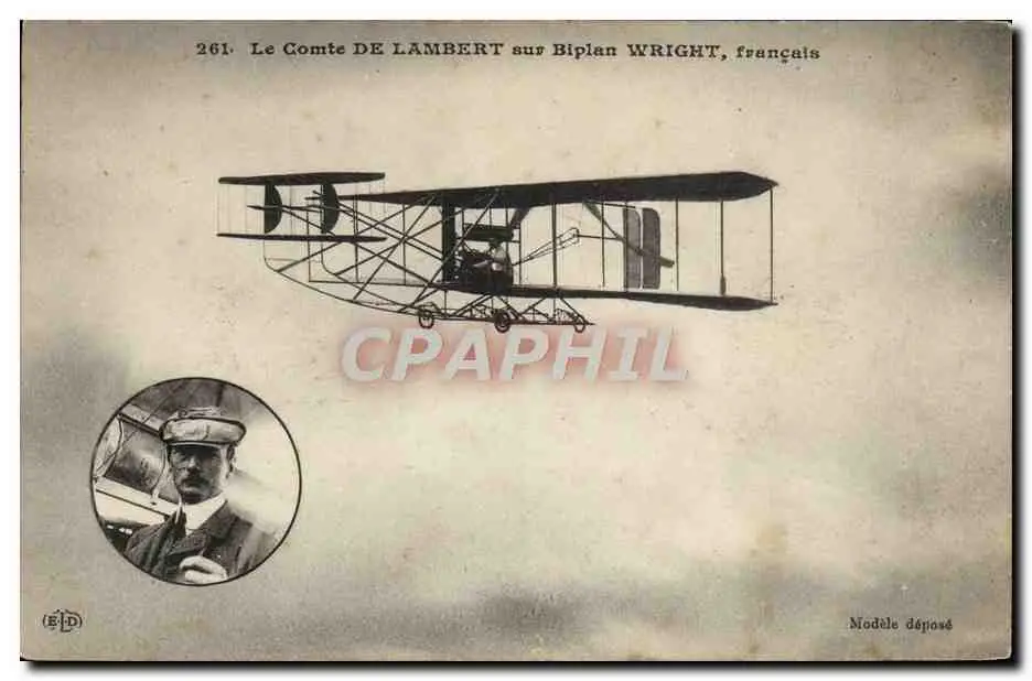Cartes postales Avion Aviation le comte de Lambert sur biplan Wright