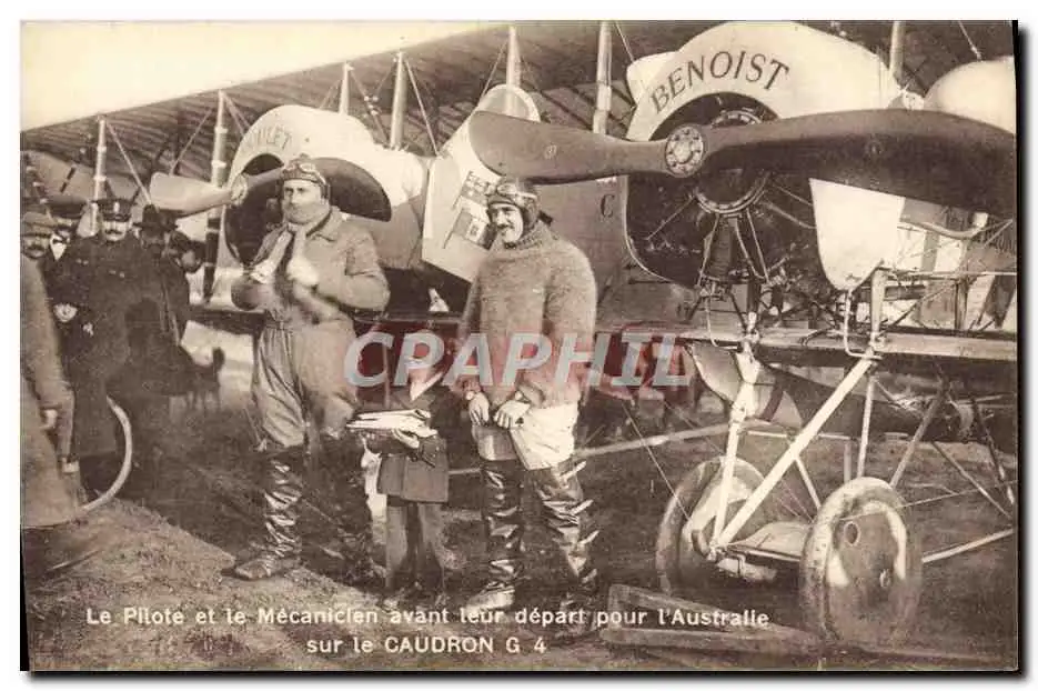 Cartes postales Avion Aviation le pilote et le mecancien avant leur depart pour l'Australie sur le Caudron G4