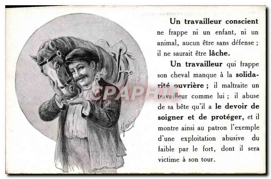 Cartes postales Cheval Equitation Hippisme Un travailleur conscient