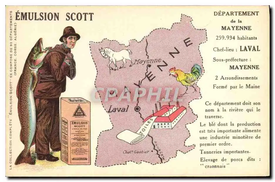Cartes postales Emulsion Scott Poisson Departement Mayenne Laval