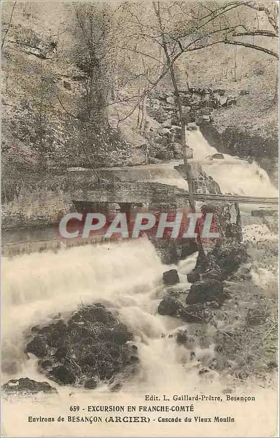 Cartes postales Excursion en Franche Comte Environs de Besancon Arcier Cascade du Vieux Moulin