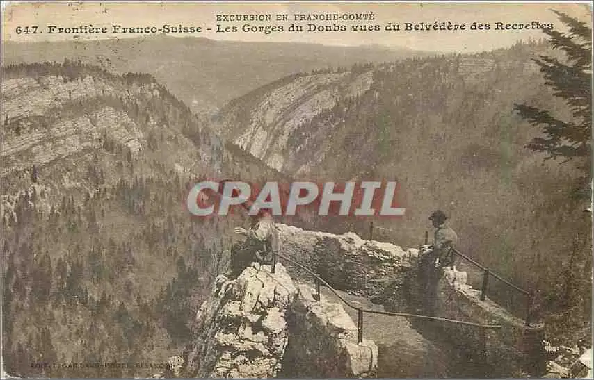 Cartes postales Excursion en Franche Comte Frontiere Franco Suisse Les Gorges du Doubs vues du Belvedere des Rec