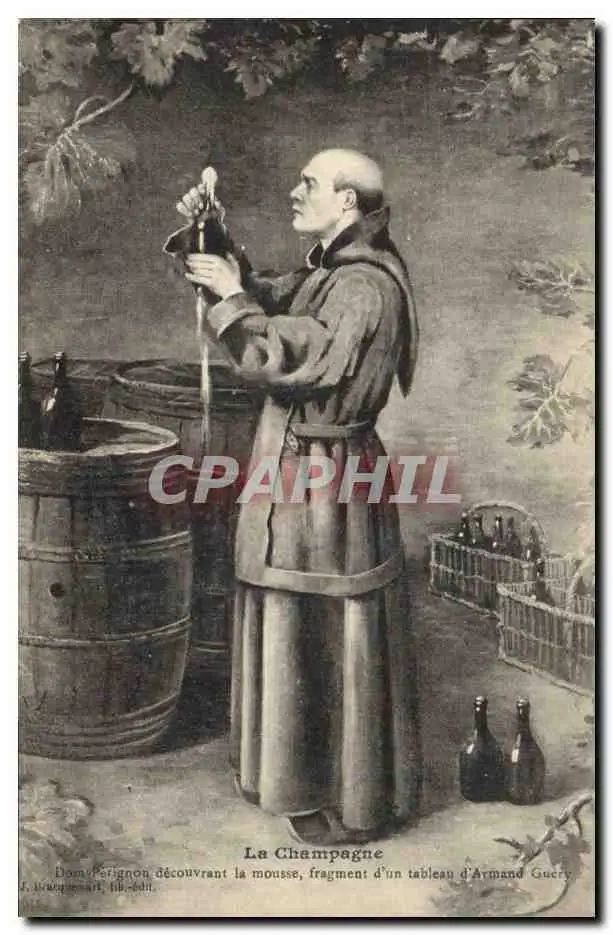Cartes postales Folklore Vin Vendange Champagne Dom Perignon decouvrant la mousse