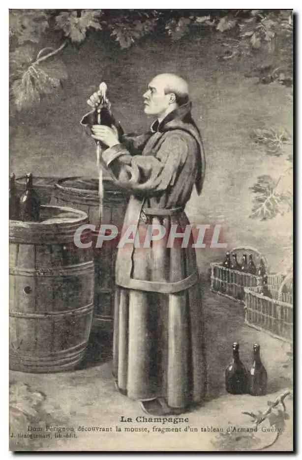Cartes postales Folklore Vin Vendange Champagne Dom Perignon decouvrant la mousse