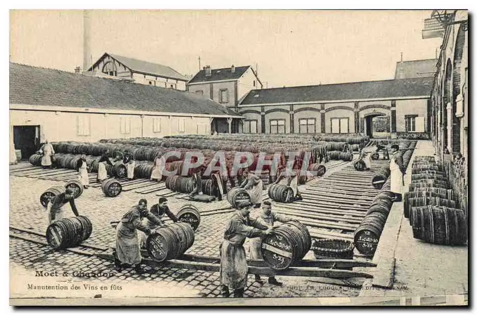 Cartes postales Folklore Vin Vendange Champagne Moet & Chandon Manutention des vins en futs