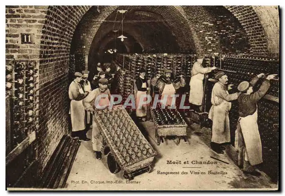 Cartes postales Folklore Vin Vendanges Champagne Moet & Chandon Rangement des vins en bouteilles