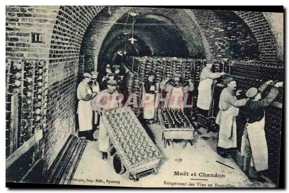 Cartes postales Folklore Vin Vignoble Vendanges Champagne Moet et Chandon Rangement des vins en bouteilles