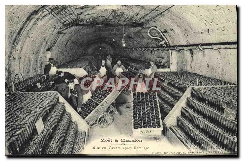 Cartes postales Folklore Vin Vignobles Champagne Moet et Chandon Mise en casiers apres remuage