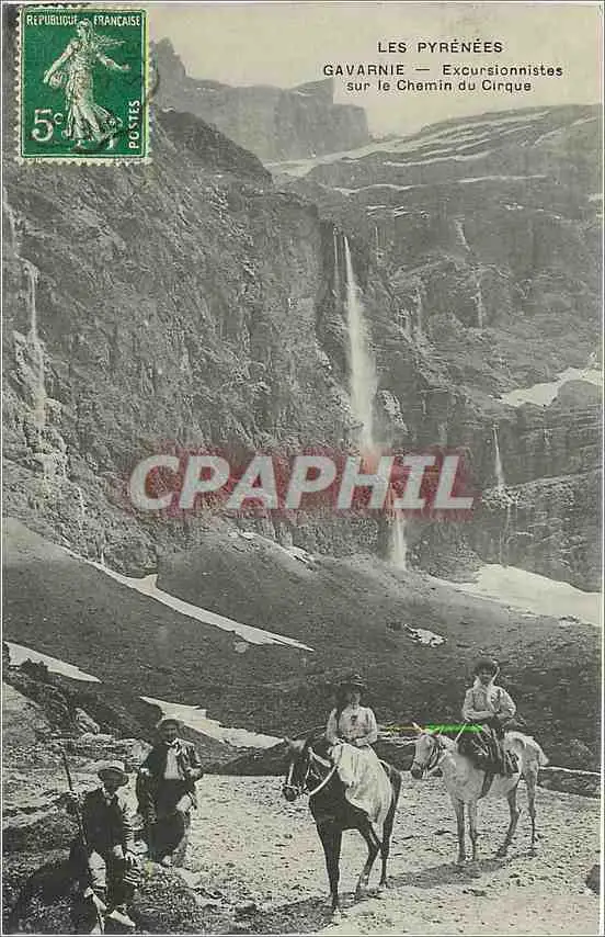 Cartes postales Gavarnie Excursionistes sur le Chemin du Cirque Chevaux