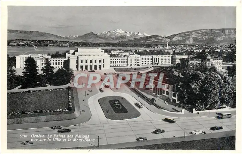 Cartes postales Geneve Le Palais des Nations vue sur la ville et le Mont Blanc
