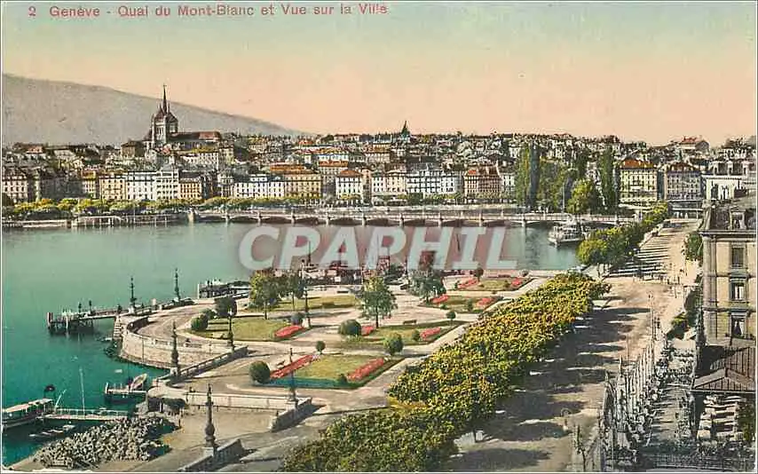 Cartes postales Geneve Quai du Mont Blanc et vue sur la ville