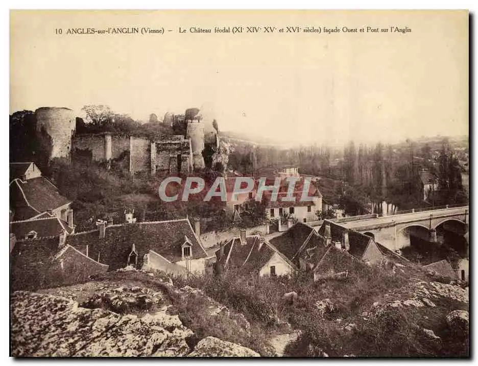 Cartes postales Grand Format Angles Sur L'Anglin Vue Generale Le Chateau facade Ouest et pont sur l'Anglin