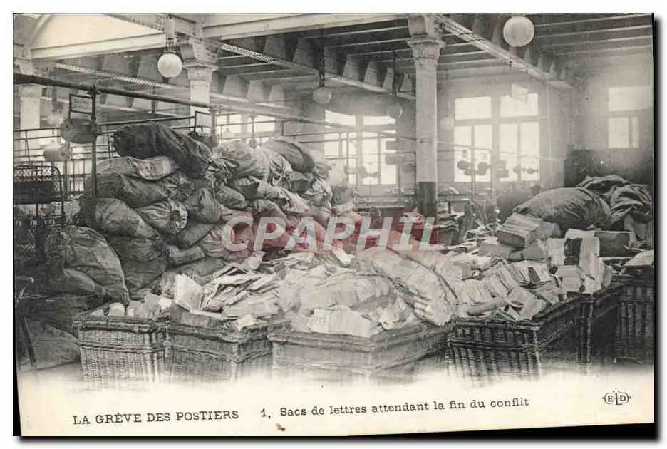Cartes postales La greve des postes Sacs de lettres attendant la fin du conflit TOP