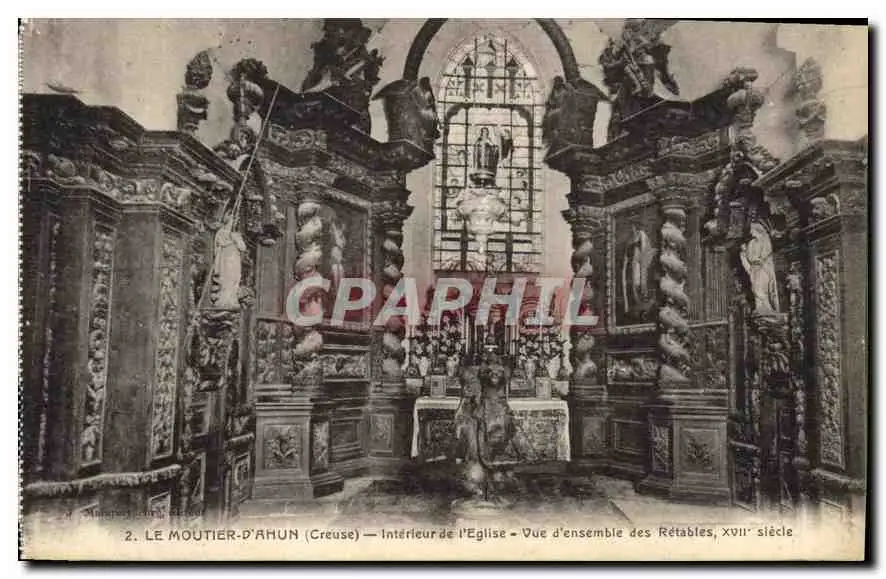 Cartes postales Le Moutier d'Ahun Creuse Interieur de l'Eglise vue d'ensemble des Retables XVII siecle