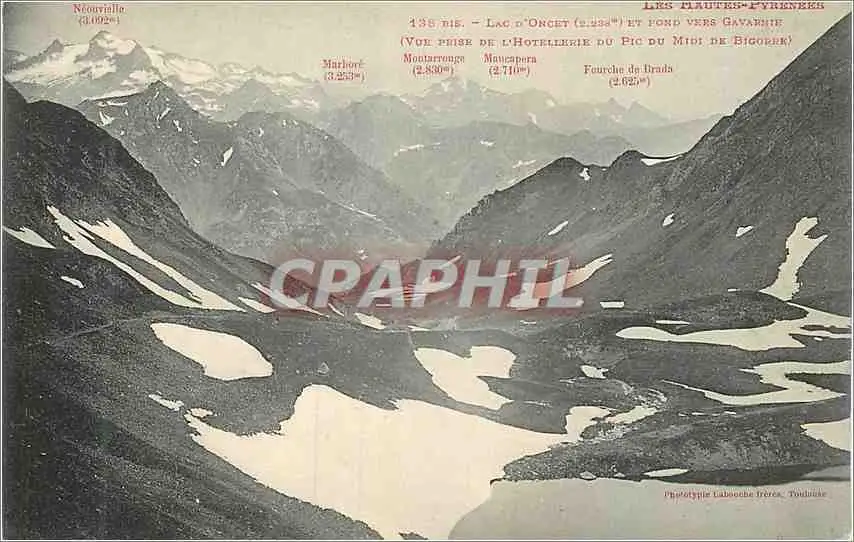 Cartes postales Les Hautes Pyrenees Lac d'Oncet et Fond vers Gavarnie Marbore Montarrouge Maucapera Fourche de B