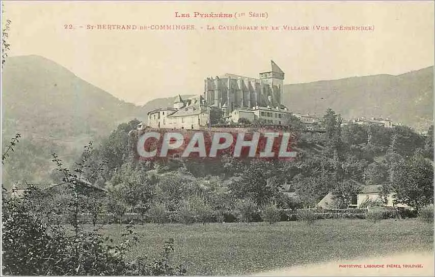 Cartes postales Les Pyrenees (Ier Serie) St Bertrand de Comminges La Cathedrale et le Village (Vue d'ensemble)