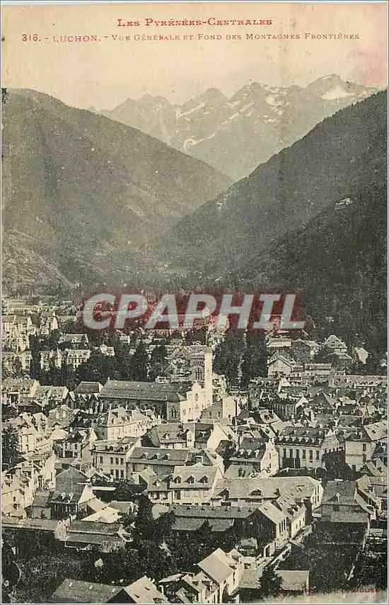Cartes postales Luchon Les Pyrenees Centrales Vue Generale et Fond des Montagnes Frontieres