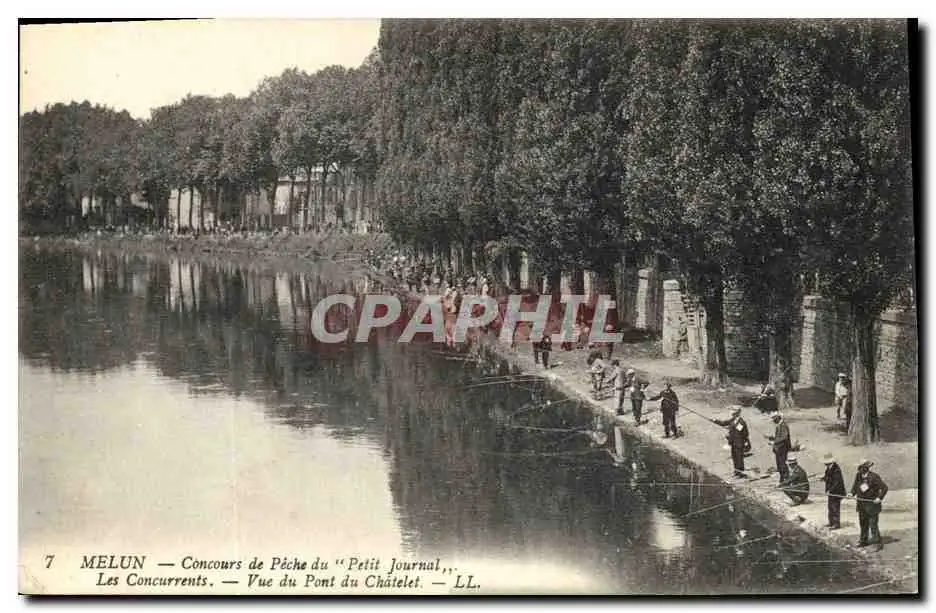 Cartes postales Peche Pecheur Melun Concours de peche du Petit Journal Les concurrents Vue du Pont du Chatelet