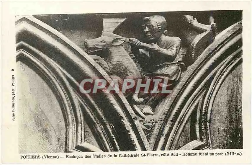 Cartes postales Poitiers Vienne Ecoincon des Stalles de la Cathedrale St Pierre cote Sud Homme tuant un pore