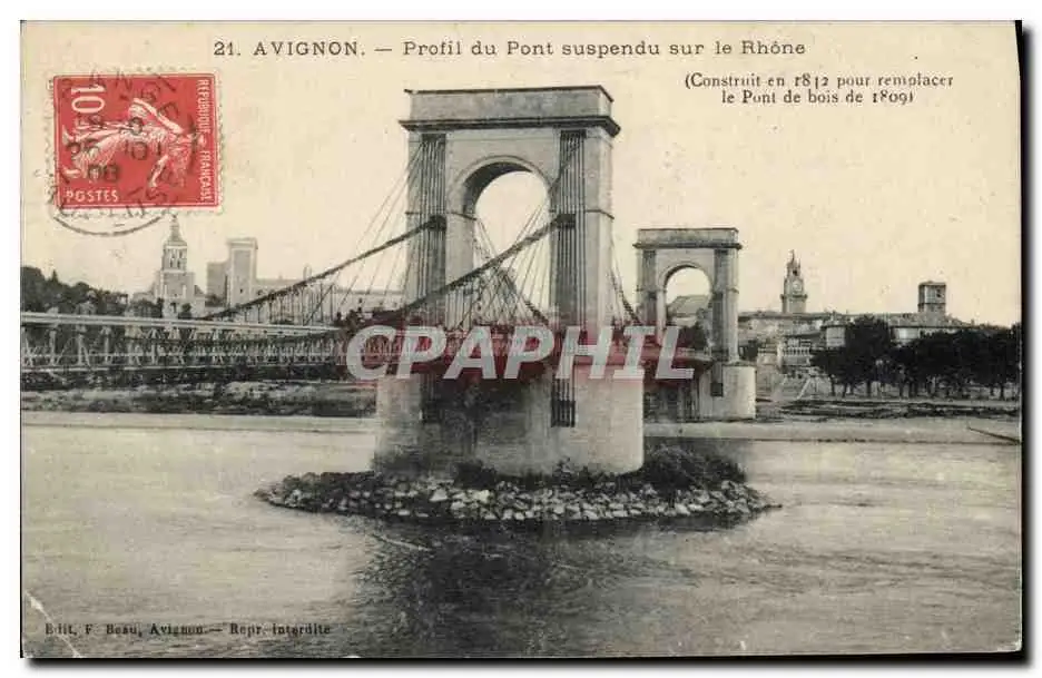 Cartes postales Pont Avignon Profil du pont suspendu sur le Rhone