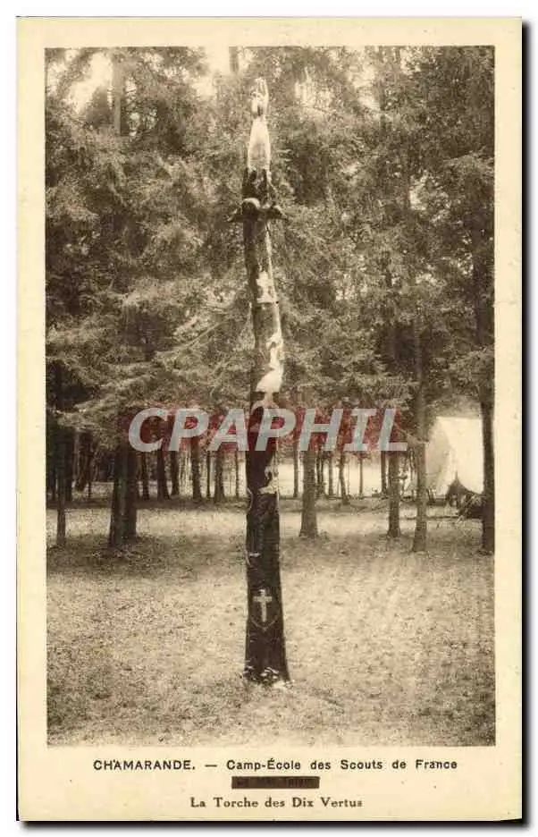 Cartes postales Scout Scoutisme Jamboree Chamarande Camp ecole des Scouts de France La torche des dix vertus