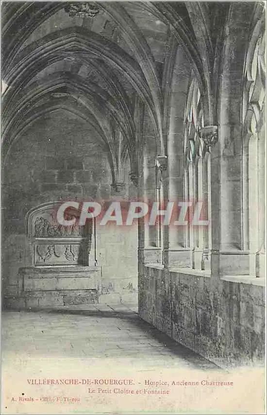 Cartes postales VILLEFRNCHE DE ROUERGUE-Hospice ancienne Chartreuse-Le petit Cloitre et Fontaine