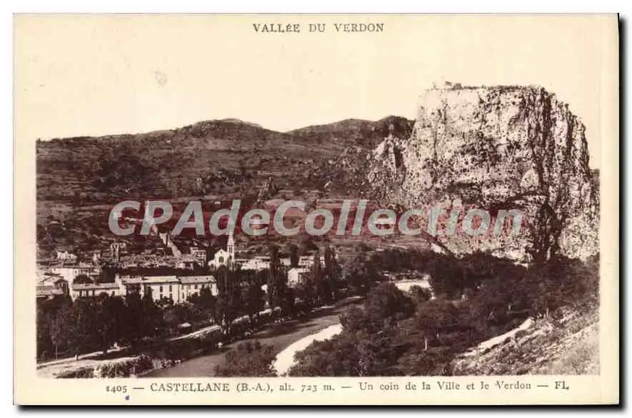 CPA Valle du Verdon Castellane B A Un coin de la Ville et le Verdon