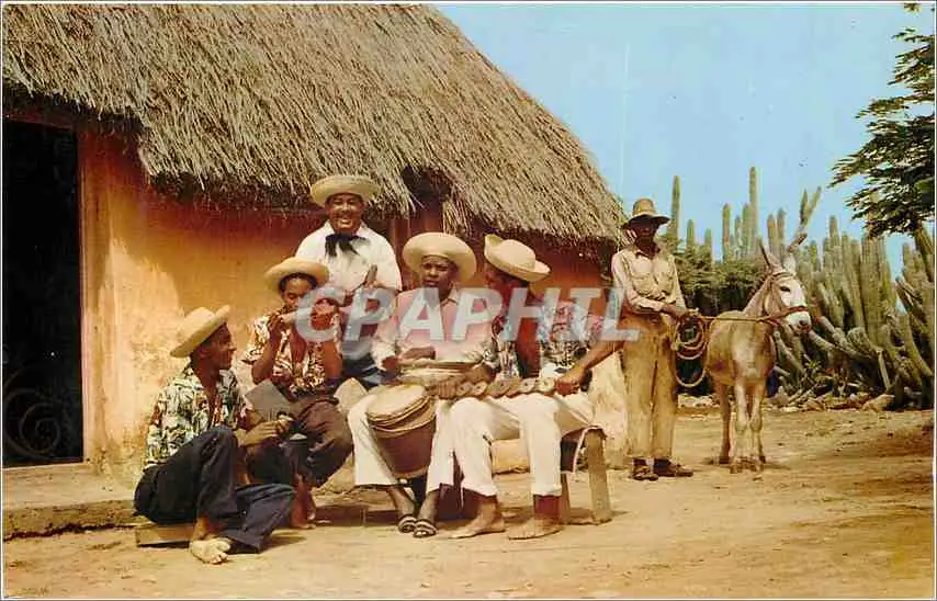 Cartes postales moderne Curacao N A Typical Countryside Setting with Strawroofed native dwelling and local music Group i