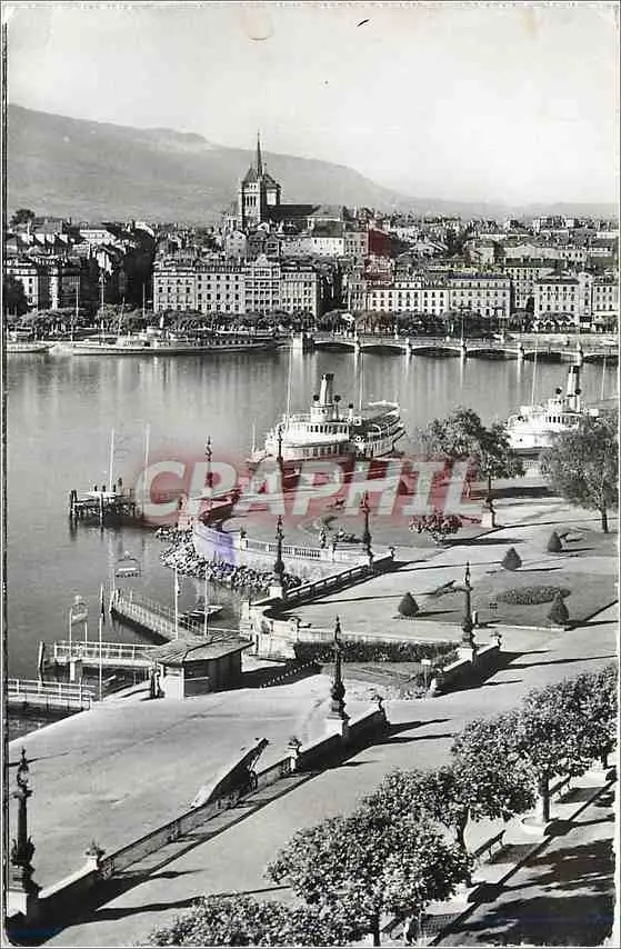 Cartes postales moderne Geneve Quai du Mont Blanc et vue sur la Ville Bateau