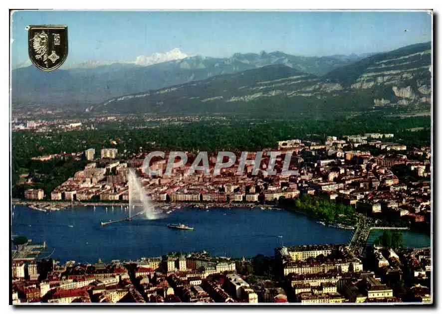 Cartes postales moderne Geneve vue aerienne de la Ville et le Mont Blanc