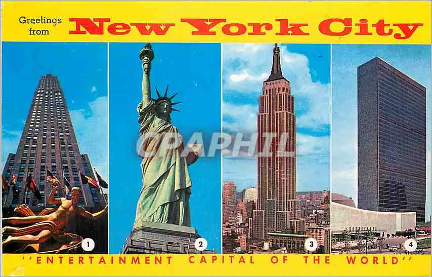 Cartes postales moderne New York City RCA Building Statue of Liberty Empire State Building United Nations Building