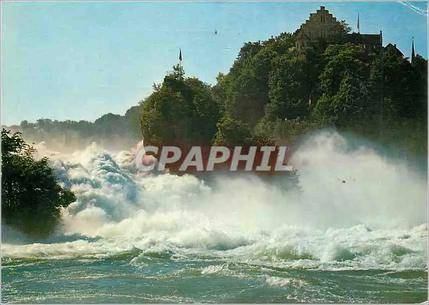 Cartes postales moderne Orientierung uber den Rheinfall Totale Breite Totale Hohe Tiefe des Rheinfallbeckens Mittiere So