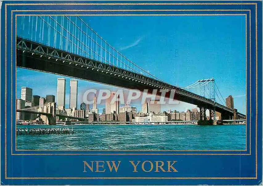 Cartes postales moderne The Manhattan Bridge with Downtown New York skyline The East River is in the foreground