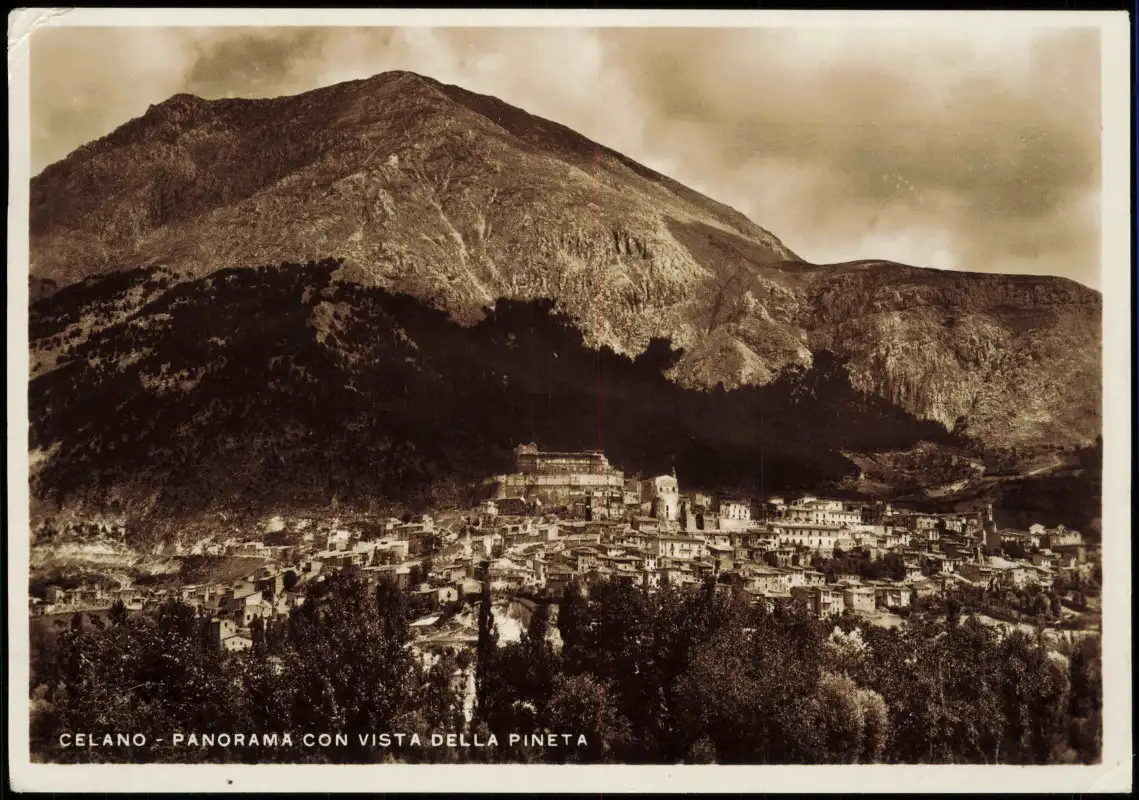 Cartolina Celano PANORAMA CON VISTA DELLA PINETA 1940