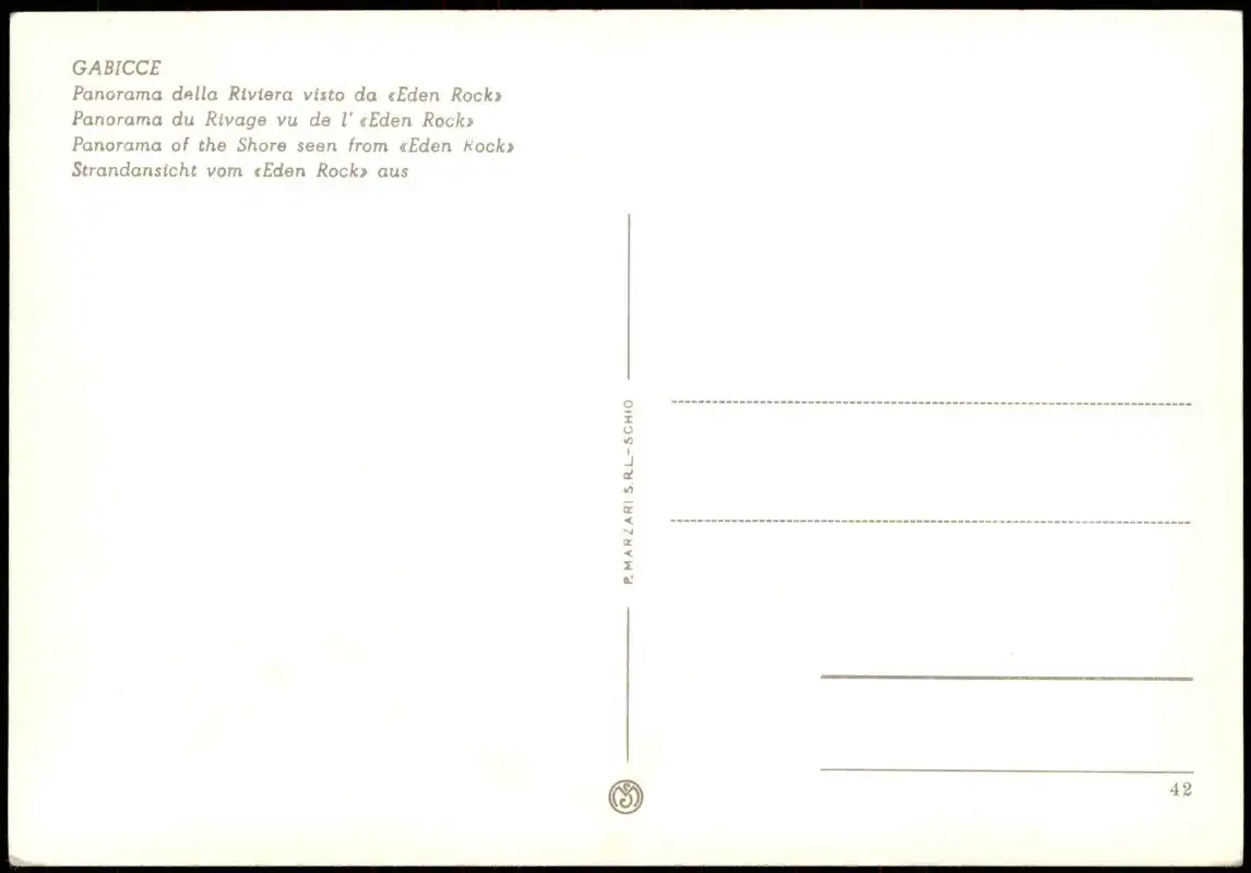 Cartolina Gabicce Mare Panorama of the Shore seen from Eden Rock 1981
