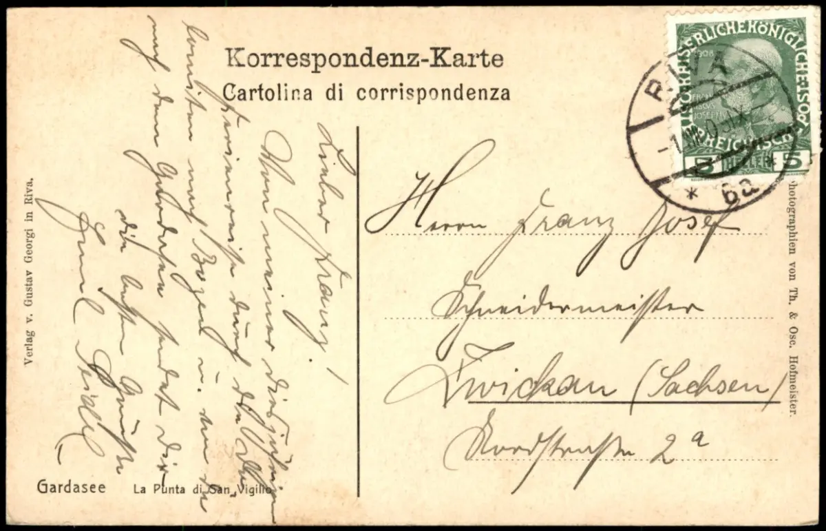 gelaufen mit Stempel RIVA (nach Zwickau)