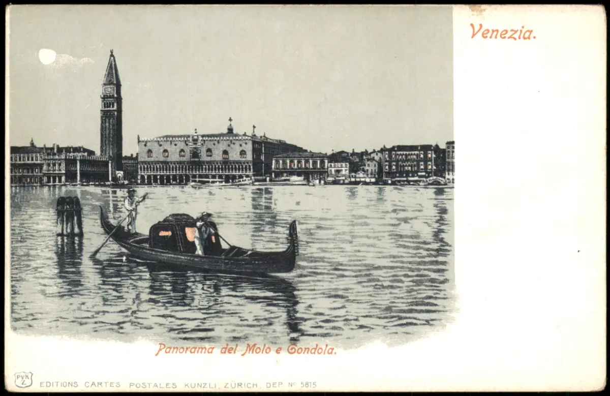 Cartolina Litho AK Venedig Venezia Panorama del Molo e Gondola. 1902