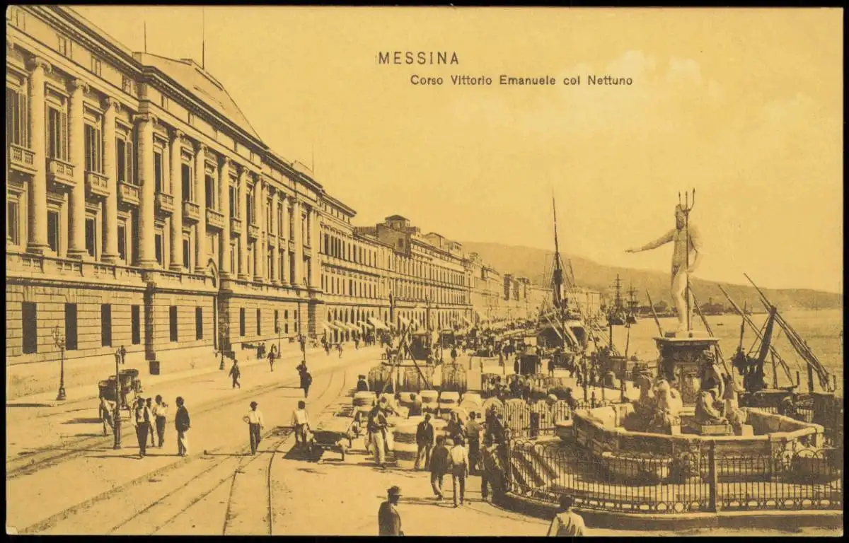 Cartolina Messina Corso Vittorio Emanuele col Nettuno 1907