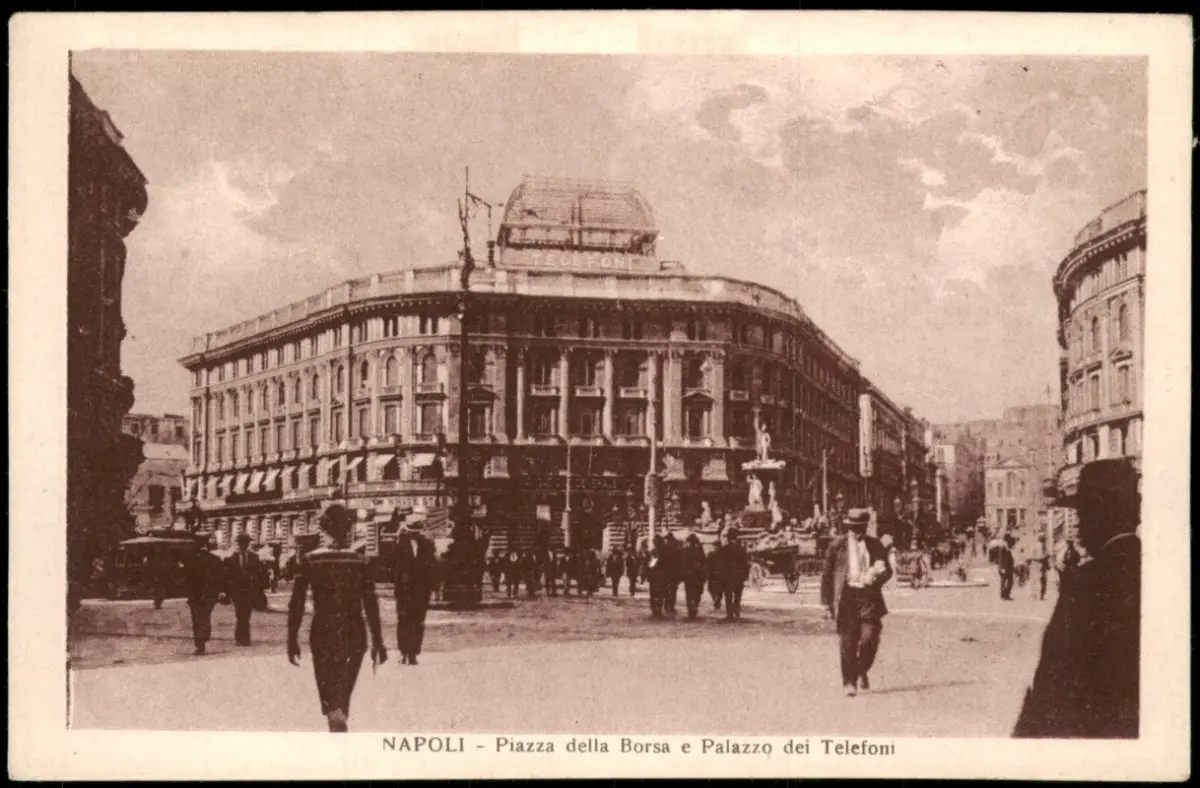 Cartolina Neapel Napoli Piazza della Borsa e Palazzo dei Telefoni 1920