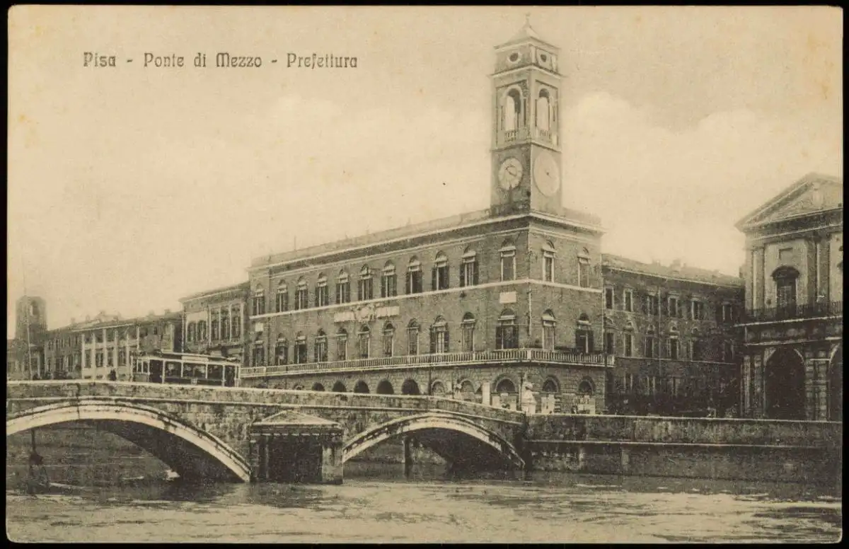 Cartolina Pisa Brücke Ortsansicht, Ponte di Mezzo Prefettura 1910