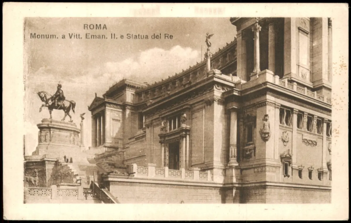 Cartolina Rom Roma Monument a Vitt, Eman. II, e Statua del Re 1926
