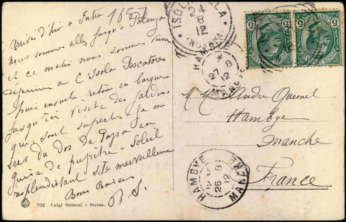 Cartolina Stresa Stresa Lago Maggiore Isola Bella Costa meridionale. 1912