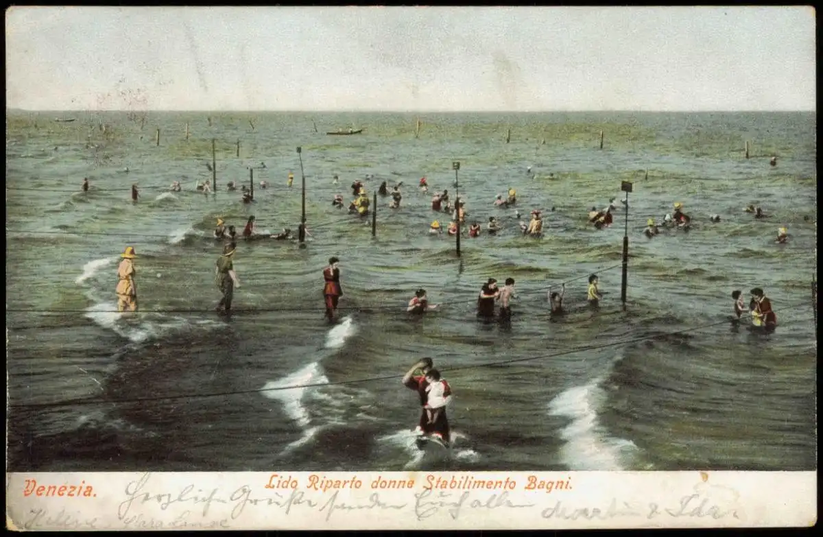 Cartolina Venedig Venezia Lido Riparto donne Stabilimento Bagni. 1908