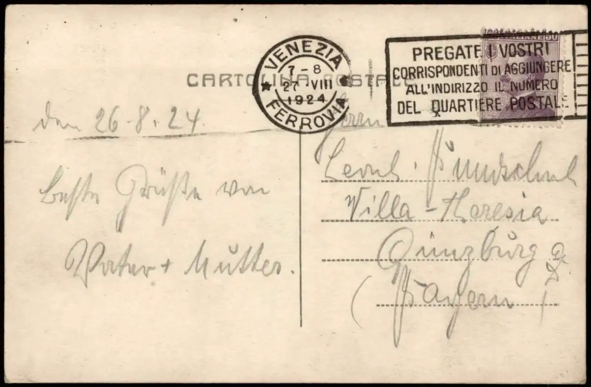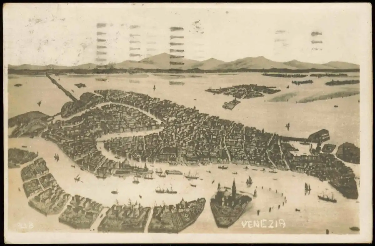 Cartolina Venedig Venezia Stadt aus der Vogelschau 1924