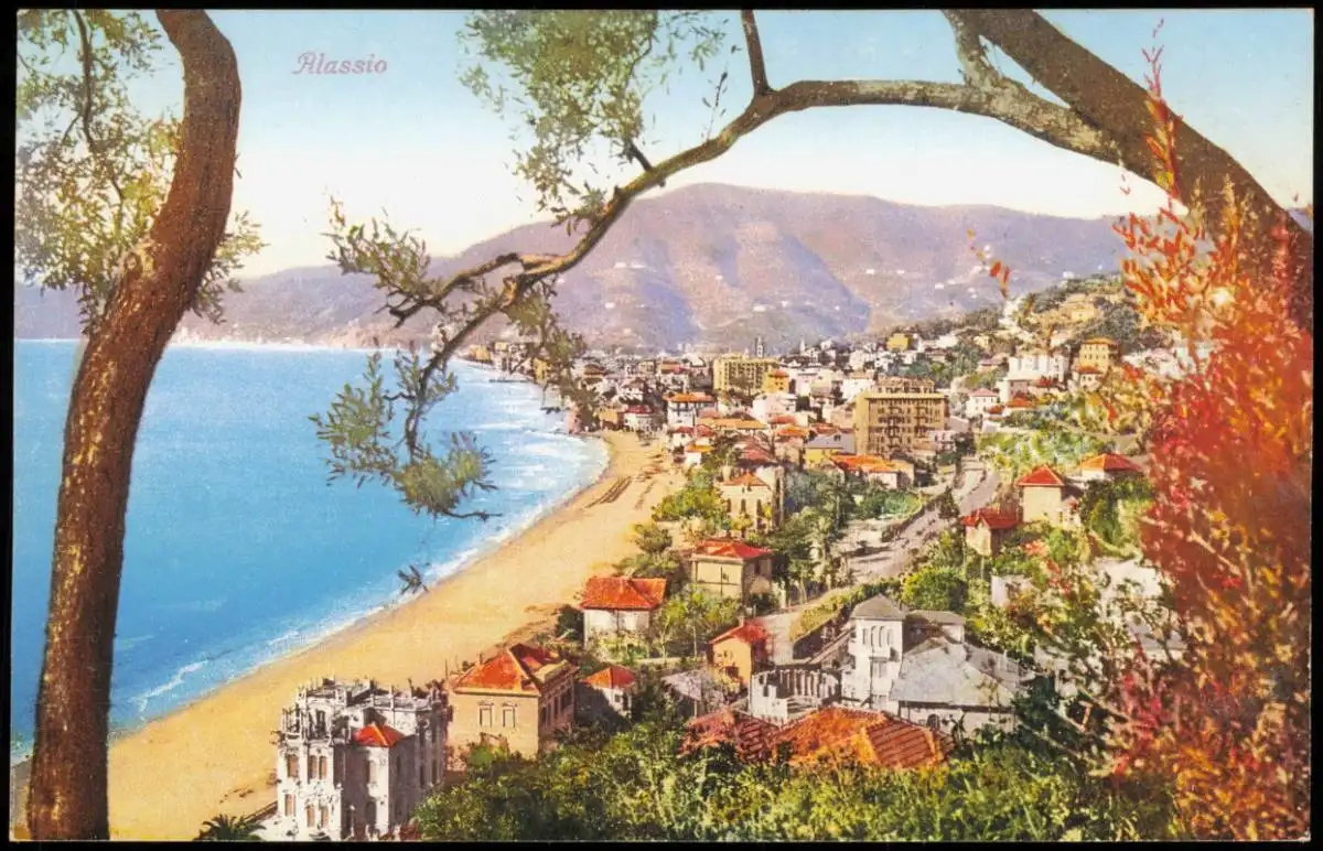 Cartoline Alassio Blick auf Stadt u. Strand 1912