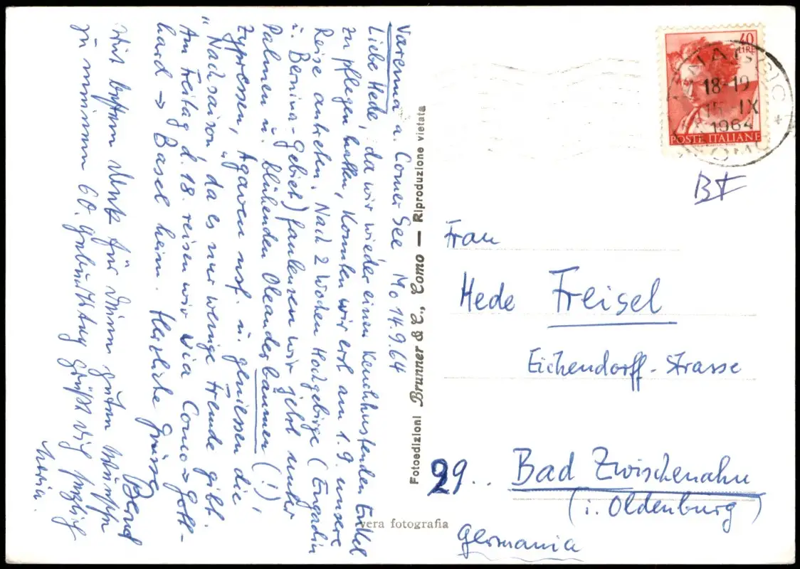 Cartoline Bellagio Panorama-Ansicht See Blick 1964